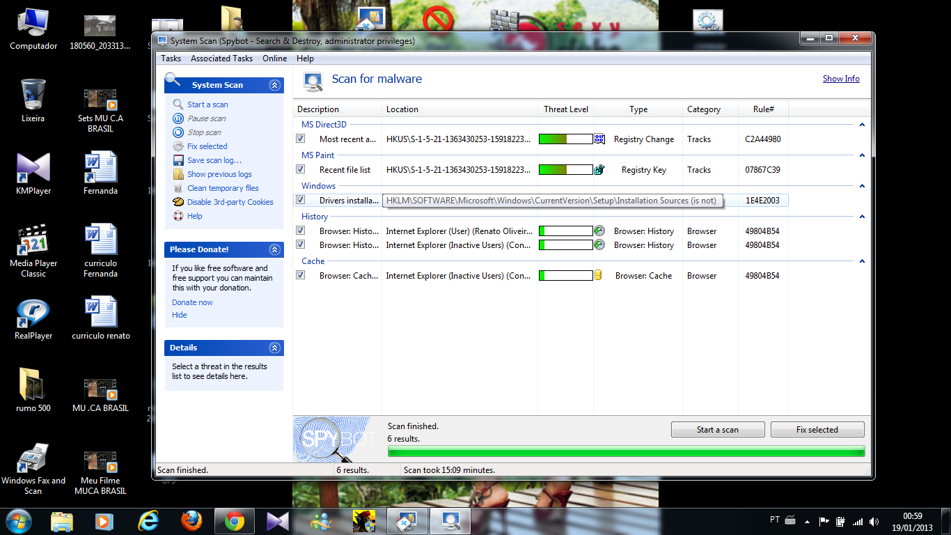 vou postar alguns prints do scaneamento do spybot e vou colocando as duvidas!