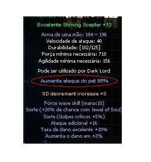 Fiz um teste com o Shining Scepter, o qual foi corrigido a porcentagem de atack do pet, como esta nesse tópico: