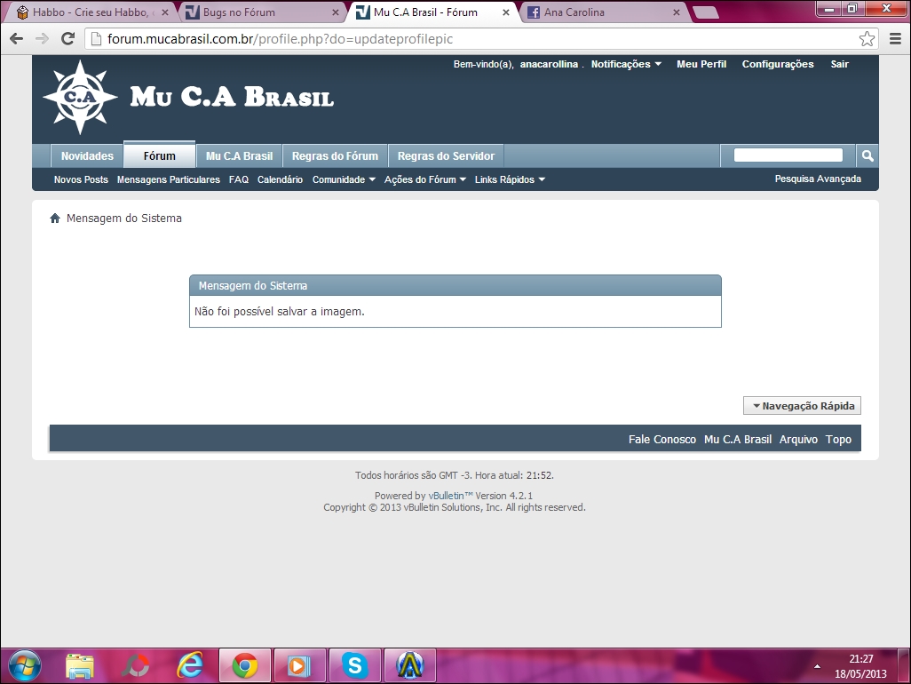 Queria saber se esta acontecendo , só esse erro comigo na hora de mudar a foto pessoal ou o avatar ! Print as Baixo :