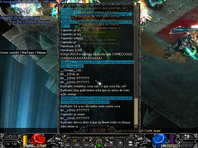 vc voltou atras...pq?...como assim?...AI EU PESSOALMENTE, NADA A VER COM GUILD...AGORTA É BEM PESSOAL PERGUNTO: A semana inteira existem detratos, maus tratos, ofensas, palavras de baixo calão, intrigas, etc...O SR ADM RESOLVEU VER UMA PALAVRINHA ************* JUSTAMENTE NA HORA DO CS E JUSTAMENTE COM UM *GM* DE REGISTRO DE UMA GUILD Q TINHA MUITOOOOO, MAS MUITOOOOOOO QUE MOSTRAR, COM GRANDES CHANCES.....O SR ADM RESOLVEU DAR ***BAN*** NA HORA DO CS????
