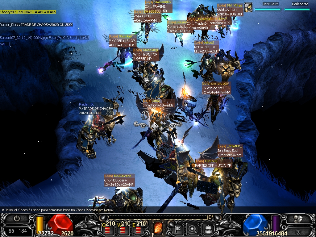Meu amigo agradeço Porque VoçÊ Foi o unico q Postou aqui , agora eu Vou te falar uma coisa o Futuro de qualqer muonline são os novos pleyers e o q estou notando nesses 2 anos e meio q jogo mu ca e q os pleyers antigos qerem dificultar para os novos q entran .. ninguem aqui ta pedindo sever easy não so q o q era hard ficou mais hard .. Bom todo mu tem uma seleçao de pleyers os fu antigos vão parando e novos pleyers vão nascendo ,agora vou expor aqui o qeu estou presenciando porque eu posso dizer pois logo todo dia no sever.. pleyers antigos parando .. pleyers novos fazendo acc e upando ate4 resetes 50 resetes e no maximo 80 rr free e parando porque parando ? vamos la pra reseta um char free 30 kk e como citei depois q tirou o ug de zen dos mapas kalima 7 e kantru3 zen sumiu do servidor com isso um pleyer novo não tem condiçao de reseta seu char pois hoje ninguem conpra joias no servidor mais por zen ten pleyers vendendo chaus 10 kk life 15 kk e ate pt fu a zen q estou cansado de ver.. nas lojinhas , e com isso muintos fica maior pt do tempo com joias na loja tentando vender pra reseta . e com isso o jogo não ta sendo viavel pra eles falo isso porque nas ferias trouxe 3 amigos pra jogar.. uparam ate 15 rate 25 r e pararam.. isso porque eu dei zen pra eles resetaram .. agora adm da uma logada no mu nos mapas qualqer sala nos mapas atlants 1 q era lotada atlants 2 atlants 3 e ate aida noria voçe não ver+ ninguem upando.. devias3 sala3 e raro ver um noob la agora o futuro de qualqer muonline são os novos pleyers .. lenbrando q evento de gestone não vale