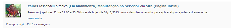 antes de postar algo que não saiba pesquise antes eles sempre avisa sobres a manutenção eles avisa no forum se vc não percebeu isso até agora como o masclador envio o link da manutençao tai pra vc ver ^^ http://forum.mucabrasil.com.br/threa...697#post157697