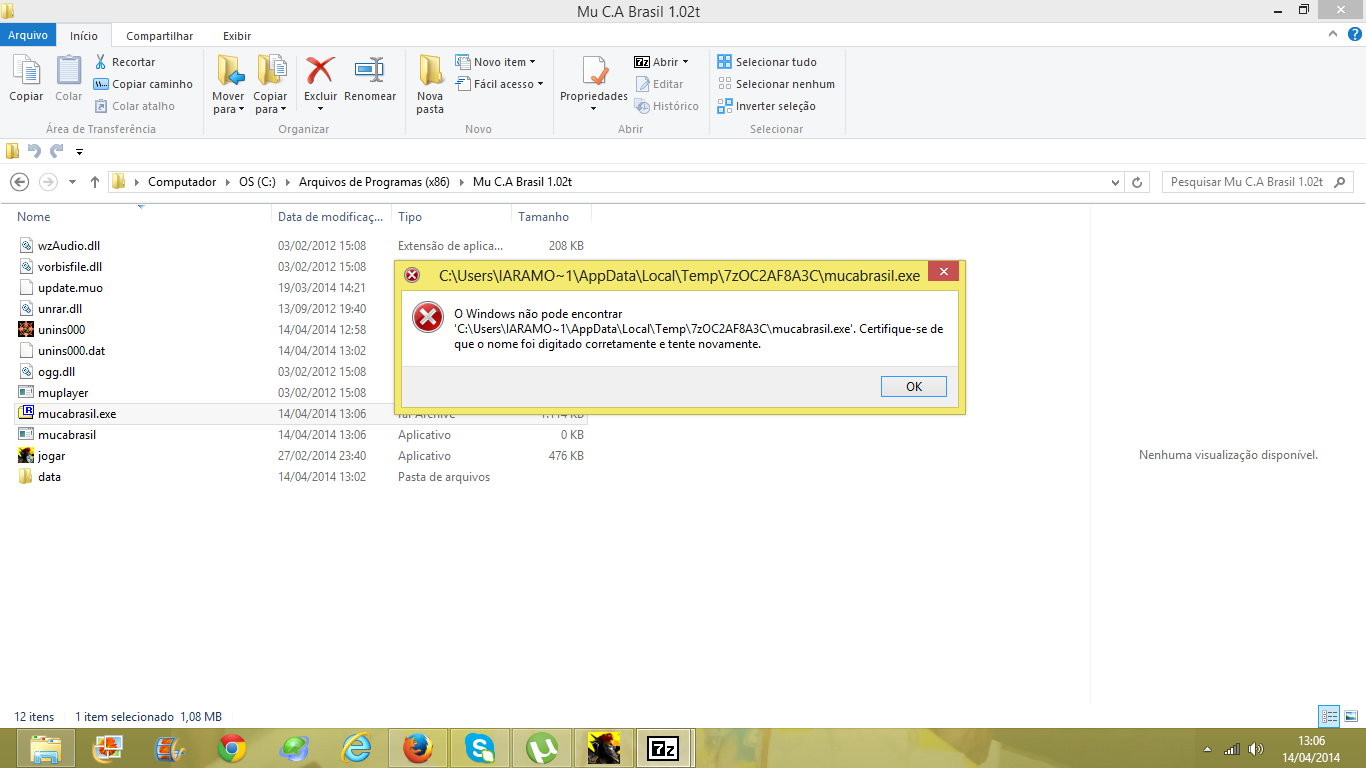 Não é o Ant virus não,pois tirei o mu do pc,desativei o ant virus por 30 minutos baixei o mu instalei e deu o mesmo problema no mucabrasil.exe..