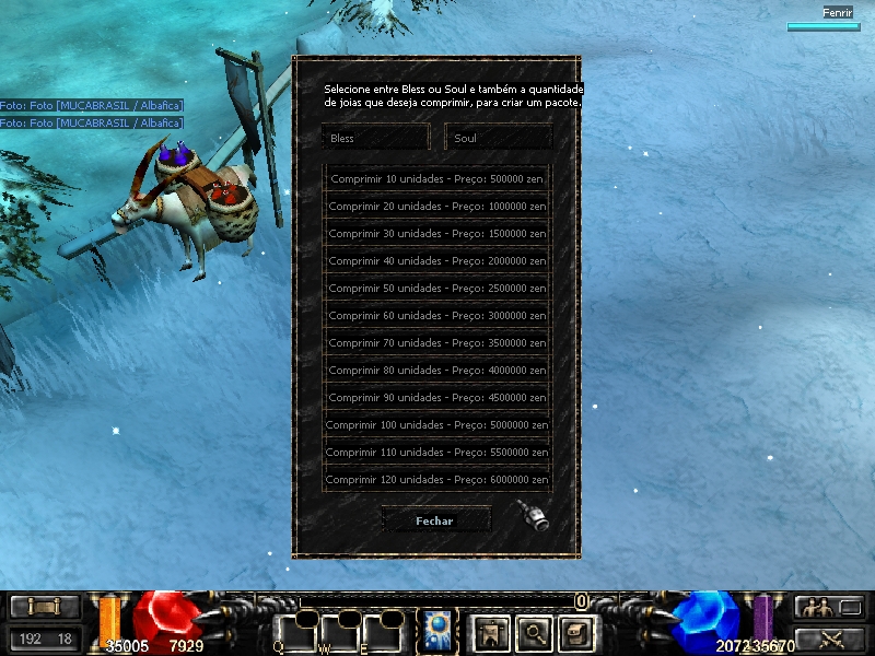 Além dos requisitos já citados, será cobrado uma certa quantidade de zen em seu inventário para que seja possível comprimir ou descomprimir pacotes de jóias.