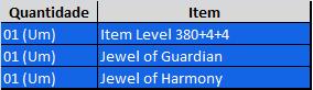 ADICIONAIS DE JEWEL OF HARMONY E ITENS LEVEL 380