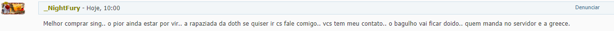 Comente não mano , voce não tem nenhuma moral de falar nada , aparti do momento que voce fala uma coisa e não faz voce nao e homem Suficiente pra ser nem da staff de nenhuma GUILD do servidor do muca brasil. FICA CHORANDO AI PRA ELES BOTAR SING chorão mero jogador.