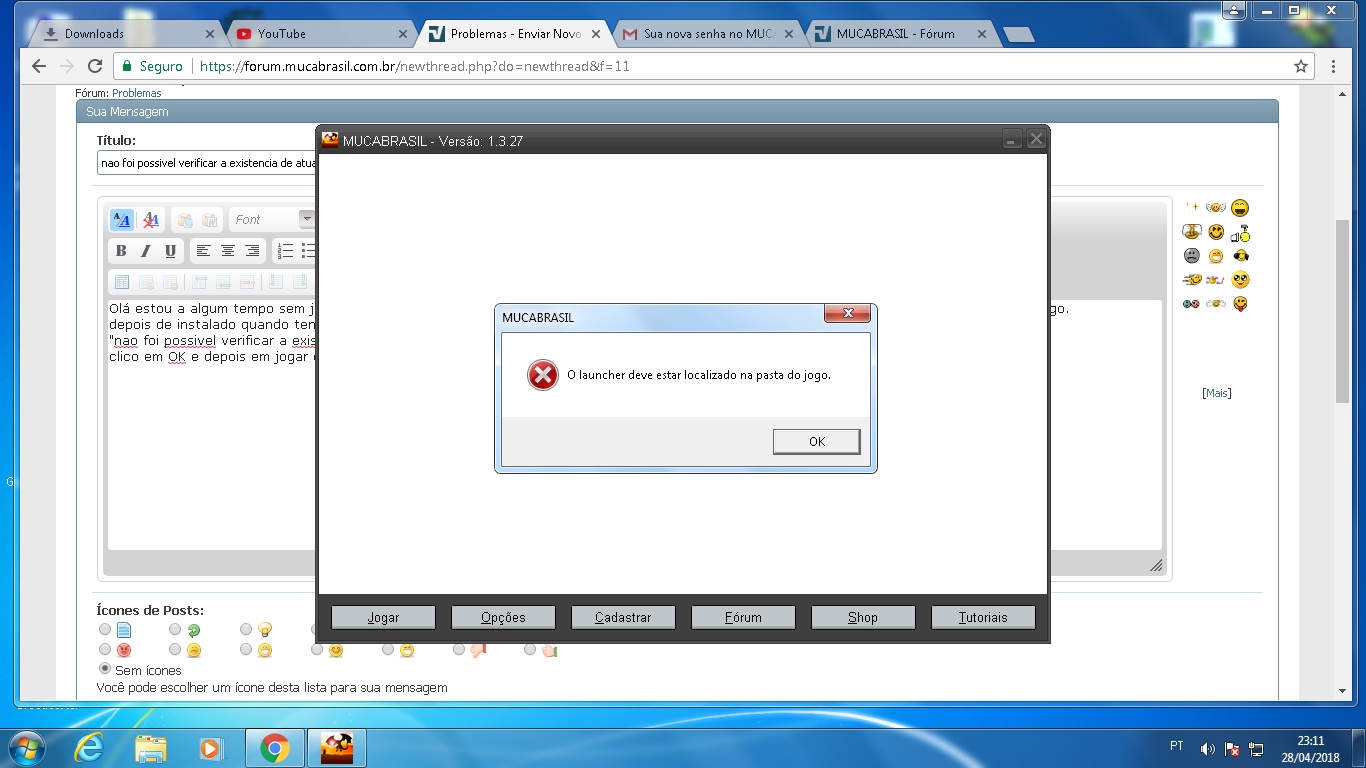 clico em OK e depois em jogar e aparece a seguinte mensagem
