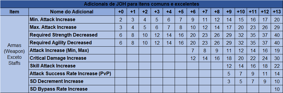 Todos os demais adicionais de Harmony referentes a staffs funcionam de forma similar ao seu respectivo adicional de arma (podendo ter algumas mudanças referentes ao valor).