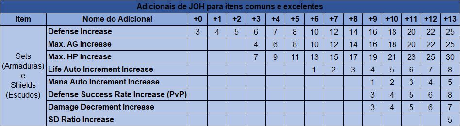 Neste tutorial será explicado o funcionamento de cada um dos adicionais amarelos. Lembrando que todos os adicionais podem ser melhorados utilizando Refining Stones (exceto os adicionais SD Bypass Rate Increase e SD Ratio Increase).