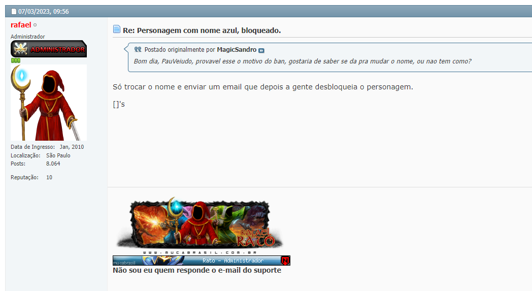 E sobre troca de nick, aqui teve um ban e foi pedido pra entrar em contato via e-mail pra poder desbloquear o cara. Então afinal, o suporte via e-mail funciona ou não?