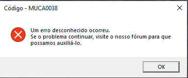 O jogo da erro sempre que tento abrir, com a seguinte mensagem: "um erro desconhecido ocorreu, se o problema continuar, visite o nosso fórum para que possamos auxilia-lo".