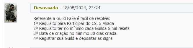 O resultado das guild para o CS sai no sabado ás 12:00 horas a Staff do Mu vai ter mais de 24 horas para verificar todos esses requisitos e retirar a guild que não esteja adequada.