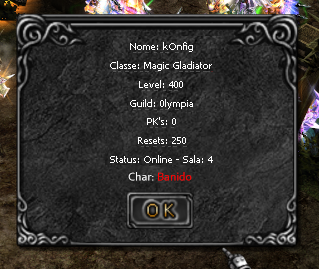 Seria interessante tbm, mostrar se o char e VIP ou não. Sempre tem um espertinho pra falar que n ta no lv de resetar ou que n pode colocar /autodc pq n e vip.