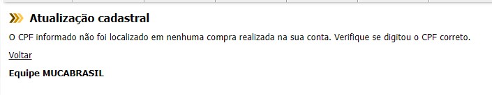 • Contas antigas com histórico de compras: na sua próxima compra, o sistema solicitará o preenchimento do CPF e da data de nascimento. Nesse caso, será aceito apenas um CPF que já tenha sido utilizado em algum pagamento anterior até a data deste anúncio.