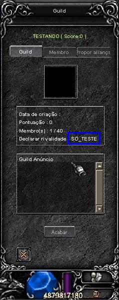 Observação Importante: Apenas os GM’s das guilds A e B, poderão Criar e Cancelar rivalidades entre si, não é possível outro char, seja ele Membro, VGM ou BM da Guild fazer o mesmo.