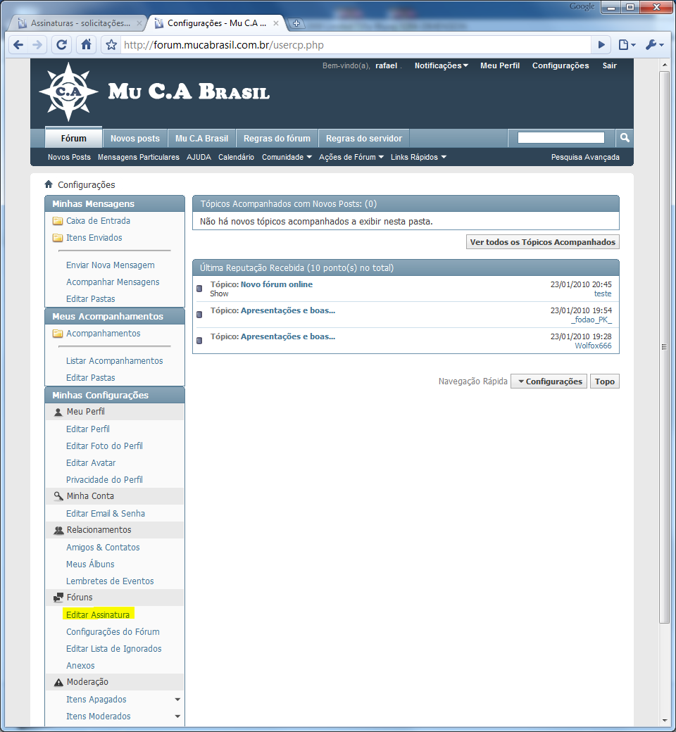 ADM's Minha assinatura e avatar estava na versao antiga do Forum qria saber se tem como pegar la...